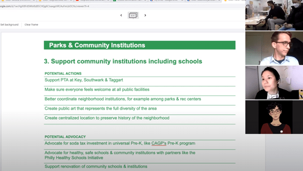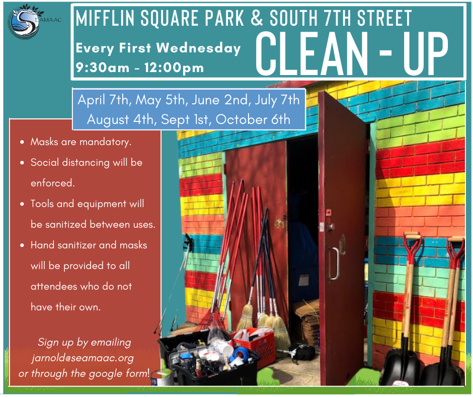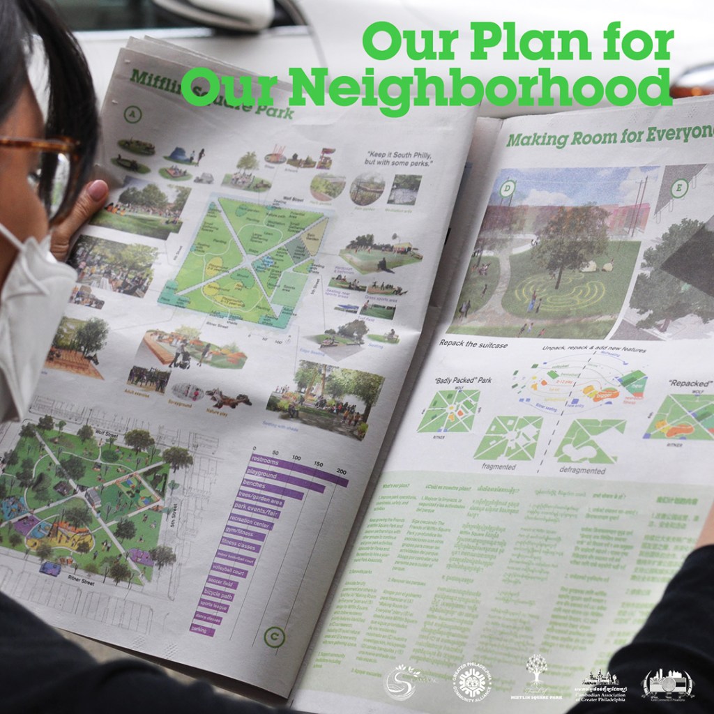- Residents and organizations want to lock in funding to complete reconstruction of Mifflin Square Park according to the “Making Room For Everyone” design, including committed $750,000 from National Parks Service ORLP program and promised one-to-one local match, and potential new funds available from the Parks and Outdoor Recreation Program of the Pennsylvania Department of Conservation and Natural Resources. Led by SEAMAAC and Friends of Mifflin Square Park, they will renew communication and advocacy with all involved parties while seeking additional resources to complete the approximately $5 million project.