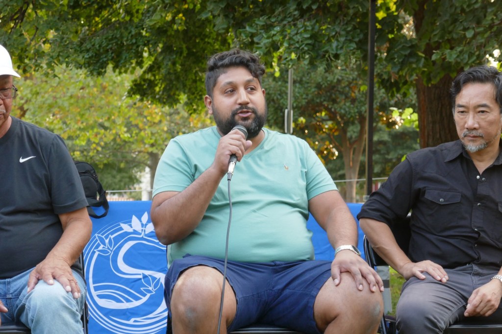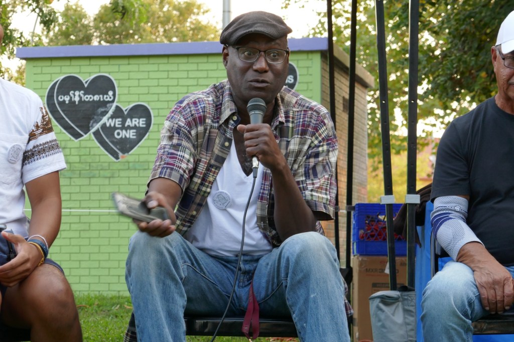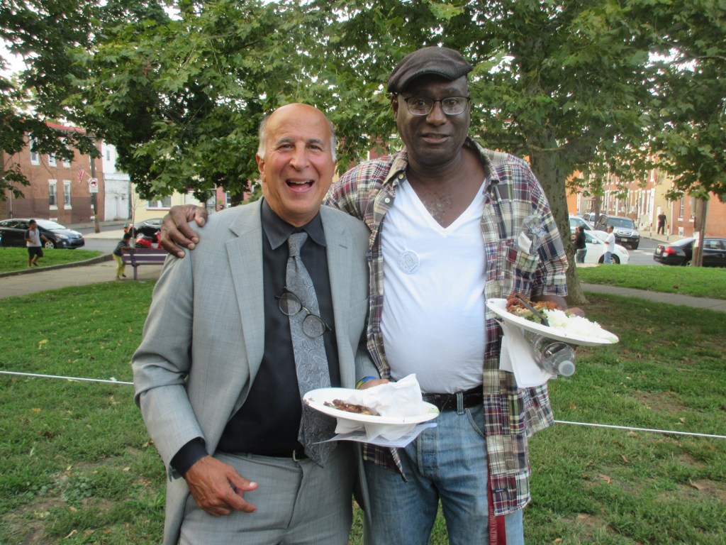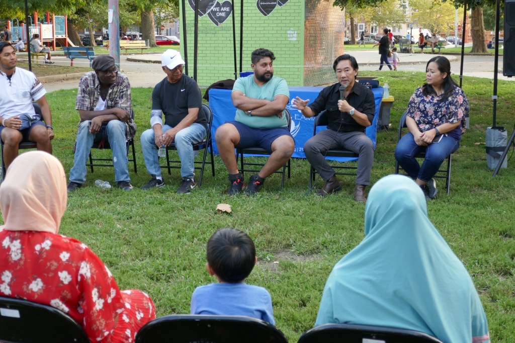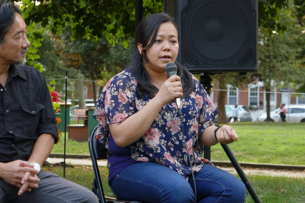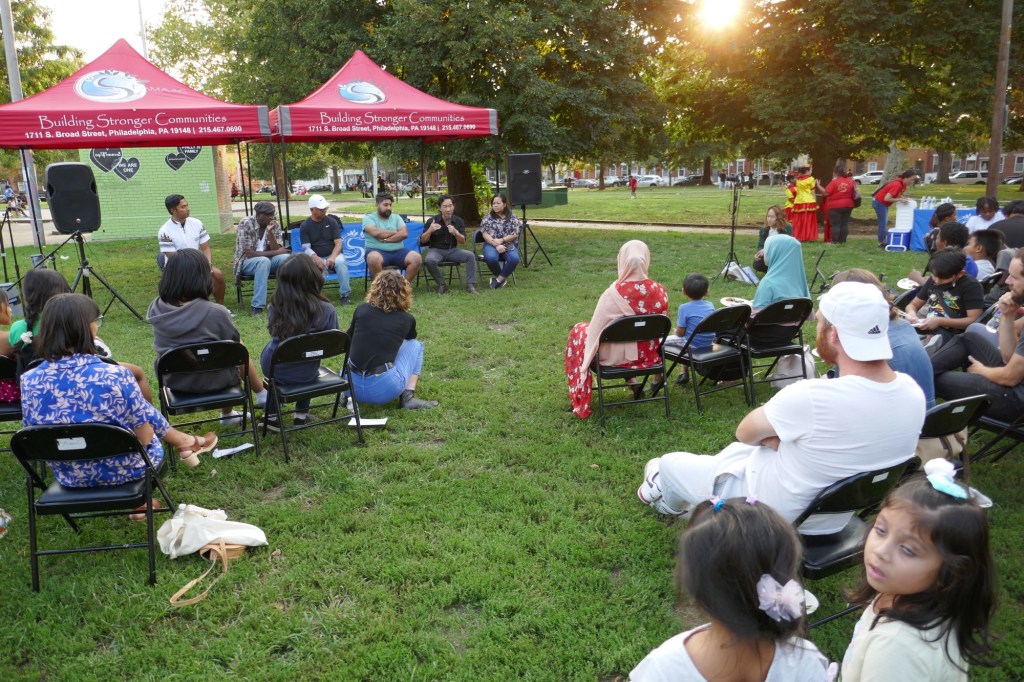 Friday evening in Mifflin Square Park at 6th and Ritner, six South Philly residents shared stories and lessons learned from growing up in this part of South Philly. Moderated by Resident Convener and CAGP Board Member Rex Yin, storytellers included 7th Street business owner Zak Aslam, Dickinson Square West Board President John Dizzley, SEAMAAC Executive Director Thoai Nguyen, Nacho Perez from Murphy Rec Center, and ZarZo, who also prepared the Burmese food enjoyed by all. (Stay tuned for a recording of South Philly Stories to be broadcast on Philadelphia Community Access Media.) The event concluded with a dance performance by Modero & Company, whose mission is “preserving the traditional Indonesian culture through dancing, food, events and other experiences for the South Philly’s Indonesian community as well as the greater Philadelphia public.”