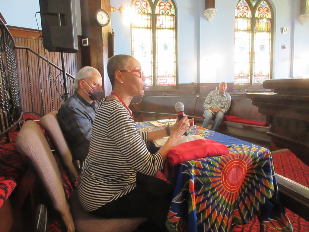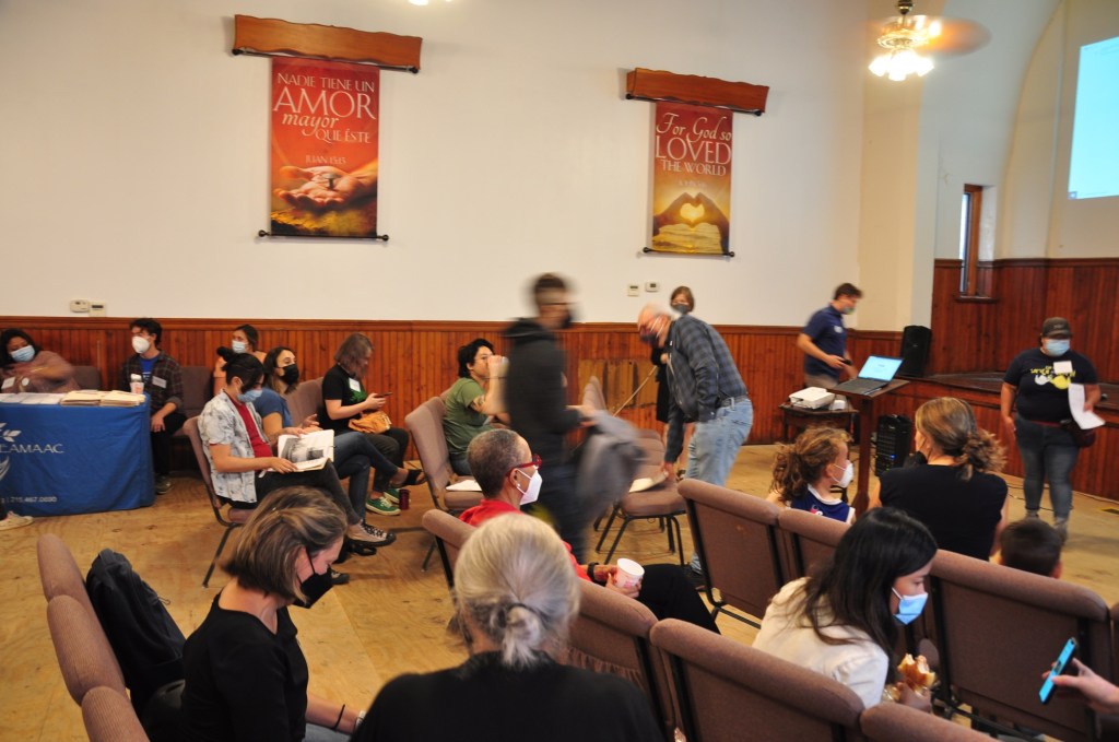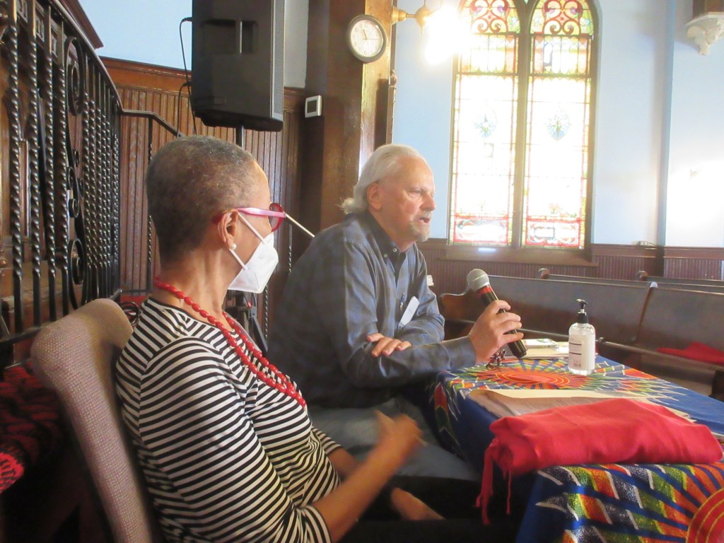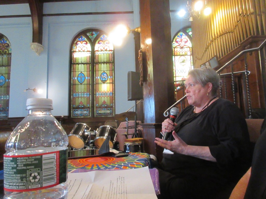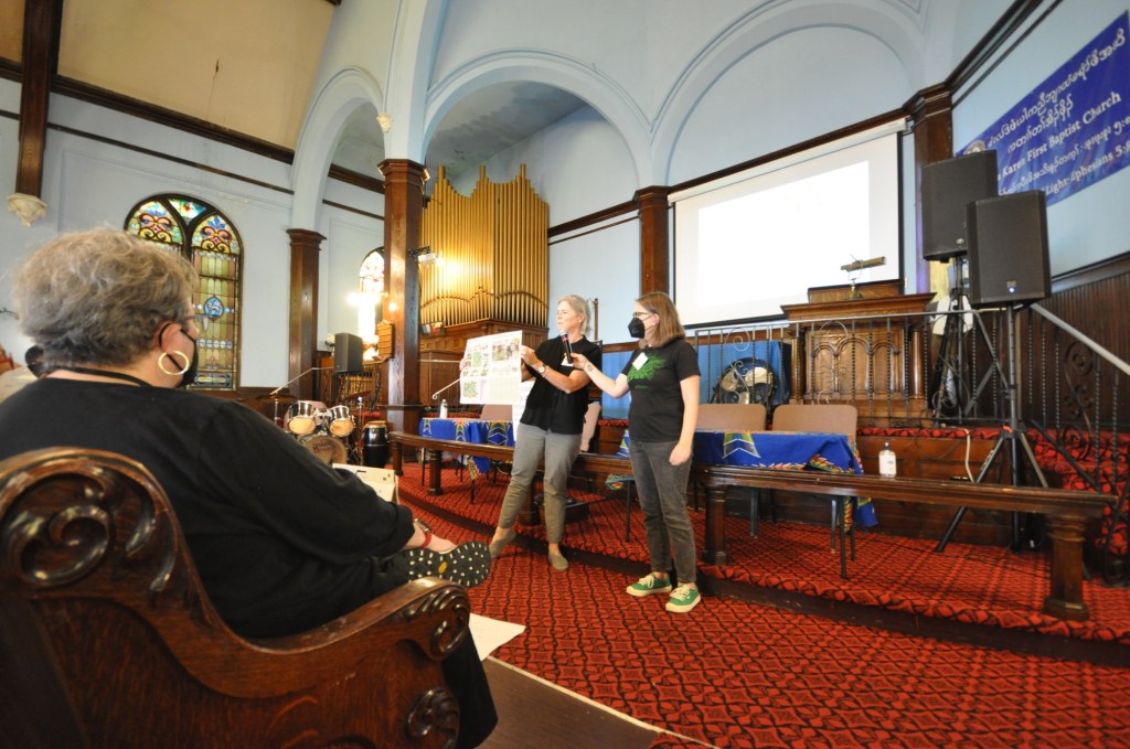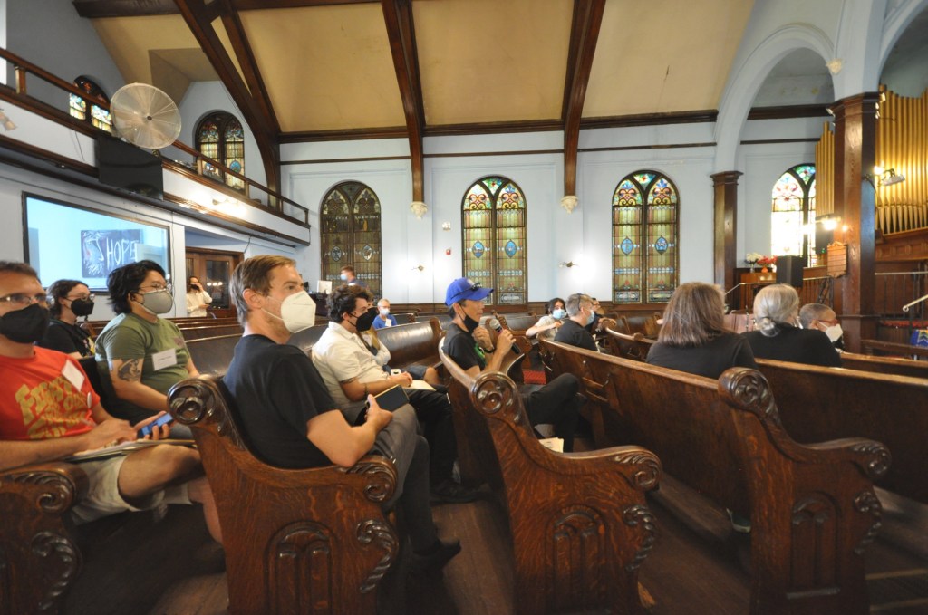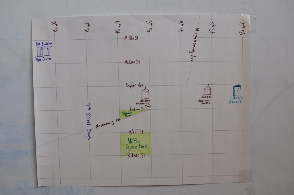 On Saturday at Snyder Avenue Congregational Church, following breakfast of pastries and buns from Dodo Bakery on Oregon Ave and an Opening Discussion on the goals and format for the day, attendees took a long coffee break, then broke into two work sessions on Parks & Greening Our Neighborhoods! and Thriving Local Businesses & Safe Streets!