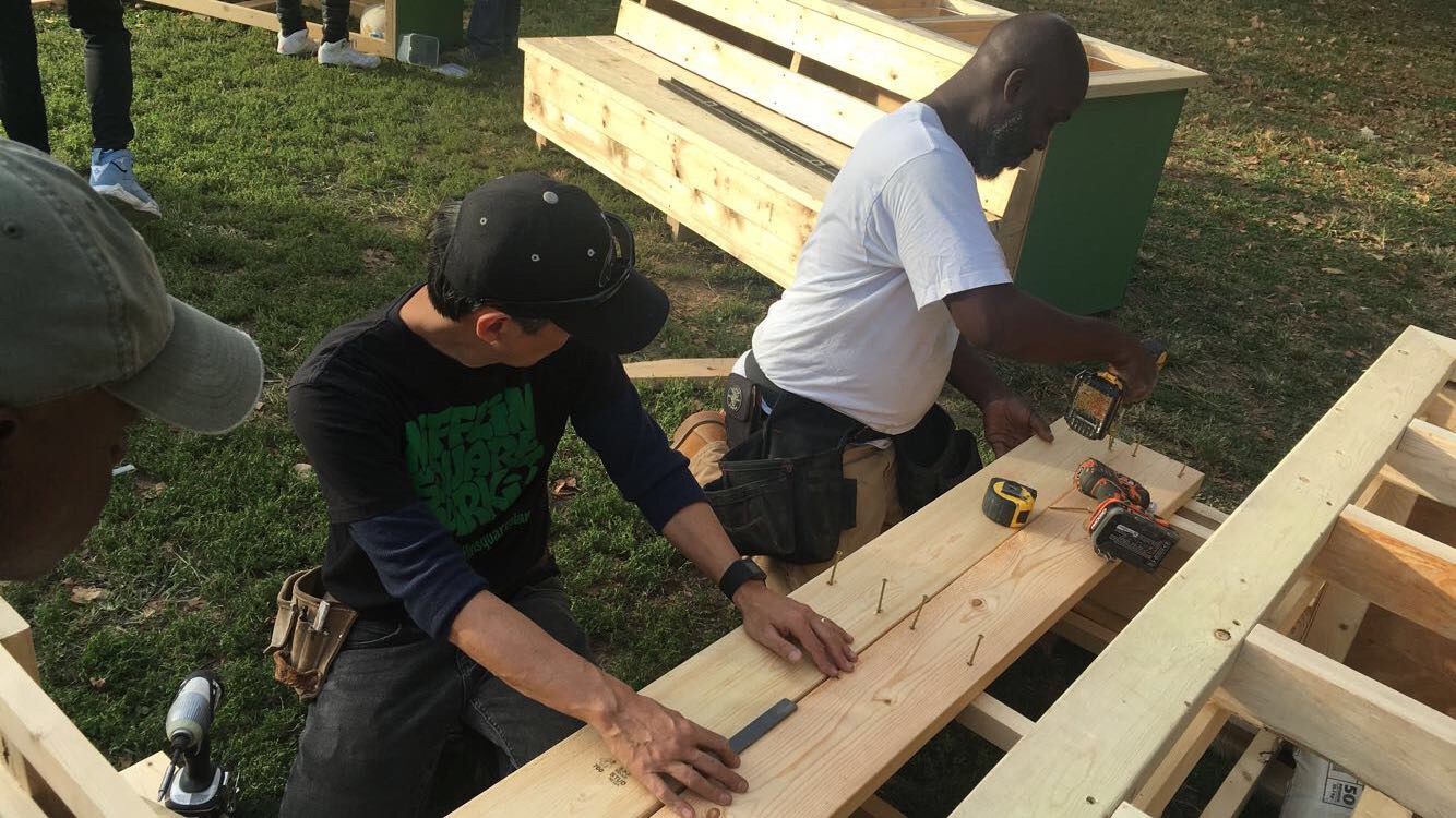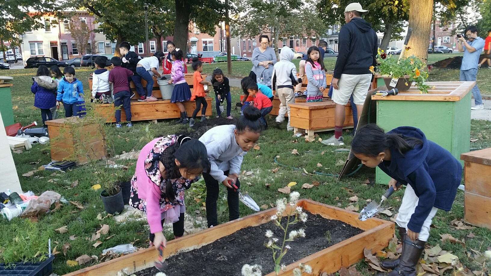 On November 4th as part of Love Your Park- SEAMAAC joined Friends of Mifflin Square Park, LOMO and PWD for a the park clean up, information sharing regarding park designs and PWD’s green projects including Green City, Clean Waters . Thanks to all the volunteers who came out on Saturday for the clean-up and help with the Gathering Gardening. Great to hear compliments of how colorful and beautiful the garden space has become! Thanks for the beatification help from UPENN’s PEER Program and many others who have helped to build, plant and tend to the garden.