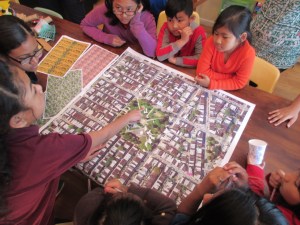 From Southeast by Southeast’s Melissa Fogg: Southeast by Southeast Burmese and Bhutanese after school students visited the Cambodian Association’s after school program to talk about their dreams for outdoor space at Mifflin Square! Kids were particularly excited about swimming pools, full-size soccer courts, and a hill with a tower and tunnel…but decided that they would be happy with improved seating, sporting facilities, barbecue areas, and flower gardens. Some of the kids felt “too cool” for the event on their way over, but were complete converts by 5:00. They are excited for changes to the park to begin, and now feel a real sense of ownership and engagement with the design process!
