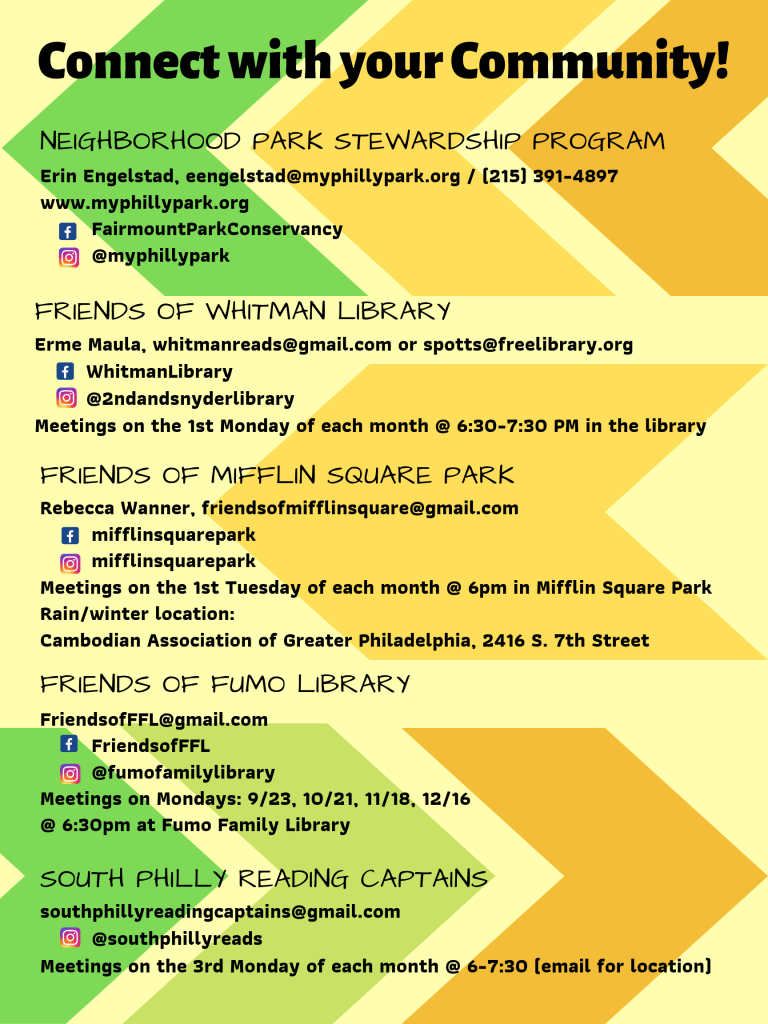 If you’re looking for ways to get involved in the work that is going on in Mifflin Square Park then a great way is to sign-up for a park and corridor clean-up. These clean-ups are monthly and we’re always looking for volunteers to help make our park a beautiful and welcoming space for everyone.